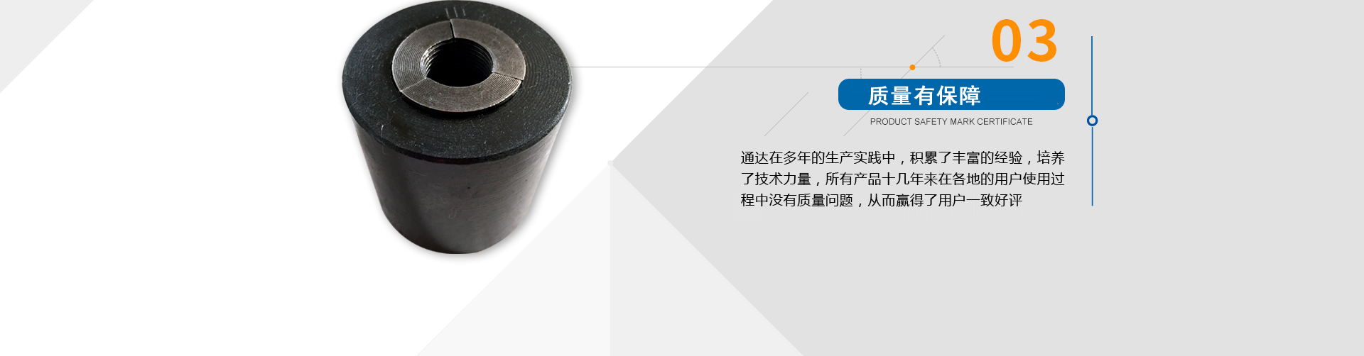 平原县通达机械有限公司坐落在平原县工业园区内,省道101、315交接处,交通便利,地理位置,公司历史悠久,注册资金3000万元,我公司生产锚具、矿用锚具、螺纹钢锚具、预应力锚具的各种锚具型号,现有6种型号的矿用产品安全标志证书KM15、KM18、KM19(1860),KM22(1770)、KM22(1860),KM29(1670)公司拥有现代化锚具生产加工设备、热处理设备及质量检测设备,全程工艺自主生产,从而保证了产品质量的把关。我公司在多年的生产实践中,积累了丰富的经验,培养了技术力量...[查看更多]